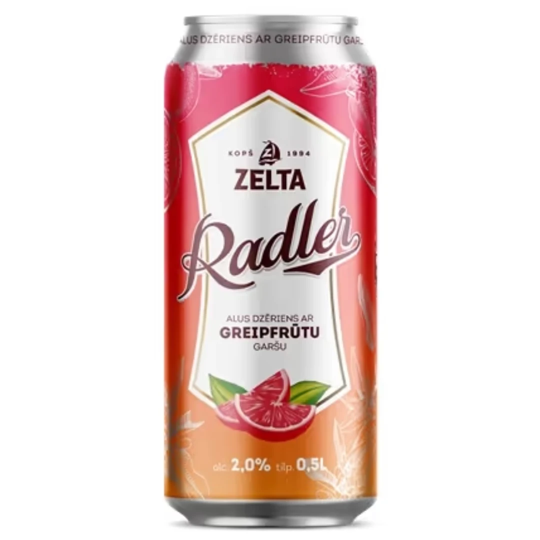 Aldaris Zelta Radler Grapefruit Can is a fruit Radler, or shandy, from Latvian brewery Aldaris. Part of the Carlsberg group, Aldaris Brewery was founded in the Latvian capital of Riga in 1865. The company now produces a range of beers, cider and soft drinks, and is dominant in the market. Aldaris Zelta Radler Grapefruit Can is a blend of Aldaris beer and grapefruit juice, creating a fruity, lower alcohol beer drink, designed for refreshment.