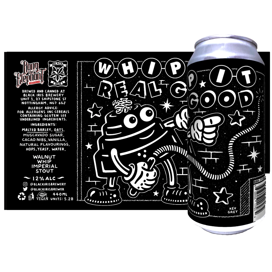“Whip It Real Good is another collab beer with another brewery that’s got an incredible reputation for it’s Impy’s—Bang The Elephant—and then once we’d realised our combined love of Devo, the beer sort of just made itself after that! Muscovado Sugar, Cacao nibs and vanilla combine together with some natural flavourings to bring you this liquid Walnut Whip in a can.”