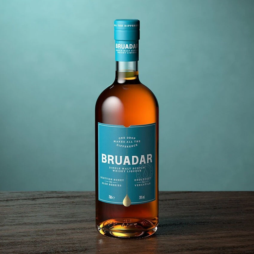 Bruadar is a Scottish whisky liqueur made with malt whisky, honey and sloe berries. Not overly sweet, instead it is a balanced, well-crafted liqueur. A malt whisky and honey liqueur, balanced with sloe berries. Bruadar is not as cloying or sticky as Drambuie and Glayva. It is not too sticky. Available in 70 cl bottle.