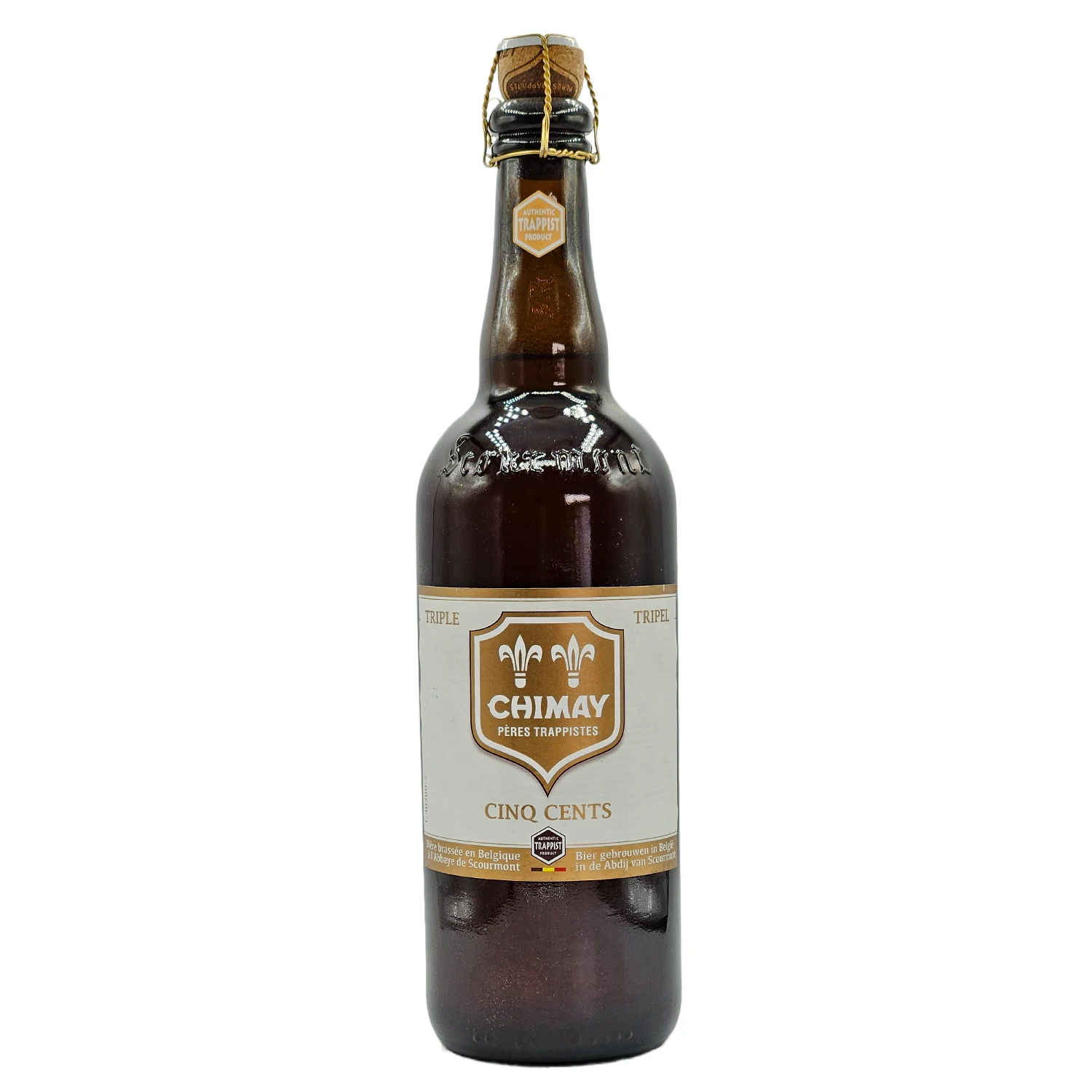Named Cinq Cents in 75 cl (25.4 fl.oz.) bottles, this beer, with its typical golden color, slightly hazy appearance and fine head, is especially characterized by its aroma which results from an agreeable combination of fresh hops and yeast.Above all it is the fruity notes of muscat and raisins that give this beer a particularly attractive aroma.
