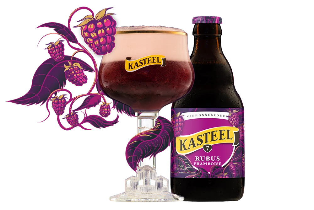Kasteel Rubus Framboise is a full-bodied beer with a delicately pearling light pink head. While the ripe raspberries tickle all the senses, a slightly malty undertone appears in the nose. The flavour is a perfect balance of sweet ripe fruits and slightly bitter undertones.